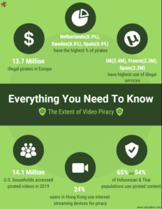 As a business owner dealing in video content, it is likely that your videos will be pirated, which will lead to a significant loss of revenue. The film industry alone suffers a loss of almost 40 and 97.1 billion dollars due to digital video piracy, which is a considerable amount. Globally, video piracy and other forms of piracy account for about 24% of the bandwidth.